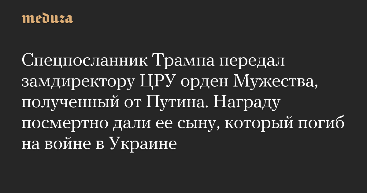Спецпосланник Трампа передал замдиректору ЦРУ орден Мужества, полученный от Путина. Награду посмертно дали ее сыну, который погиб на войне в Украине