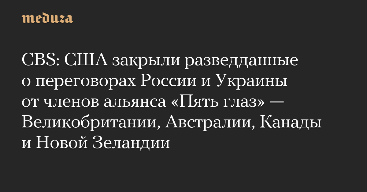 CBS: США закрыли разведданные о переговорах России и Украины от членов альянса «Пять глаз» — Великобритании, Австралии, Канады и Новой Зеландии