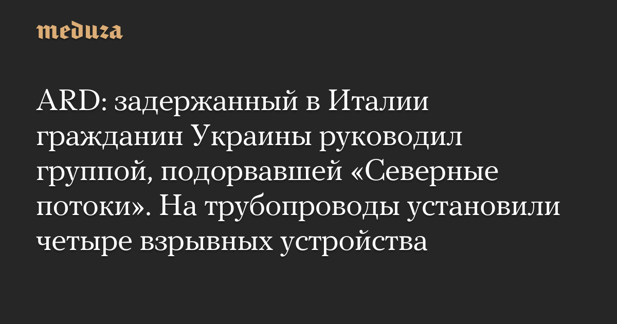 ARD: задержанный в Италии гражданин Украины руководил группой, подорвавшей «Северные потоки». На трубопроводы установили четыре взрывных устройства