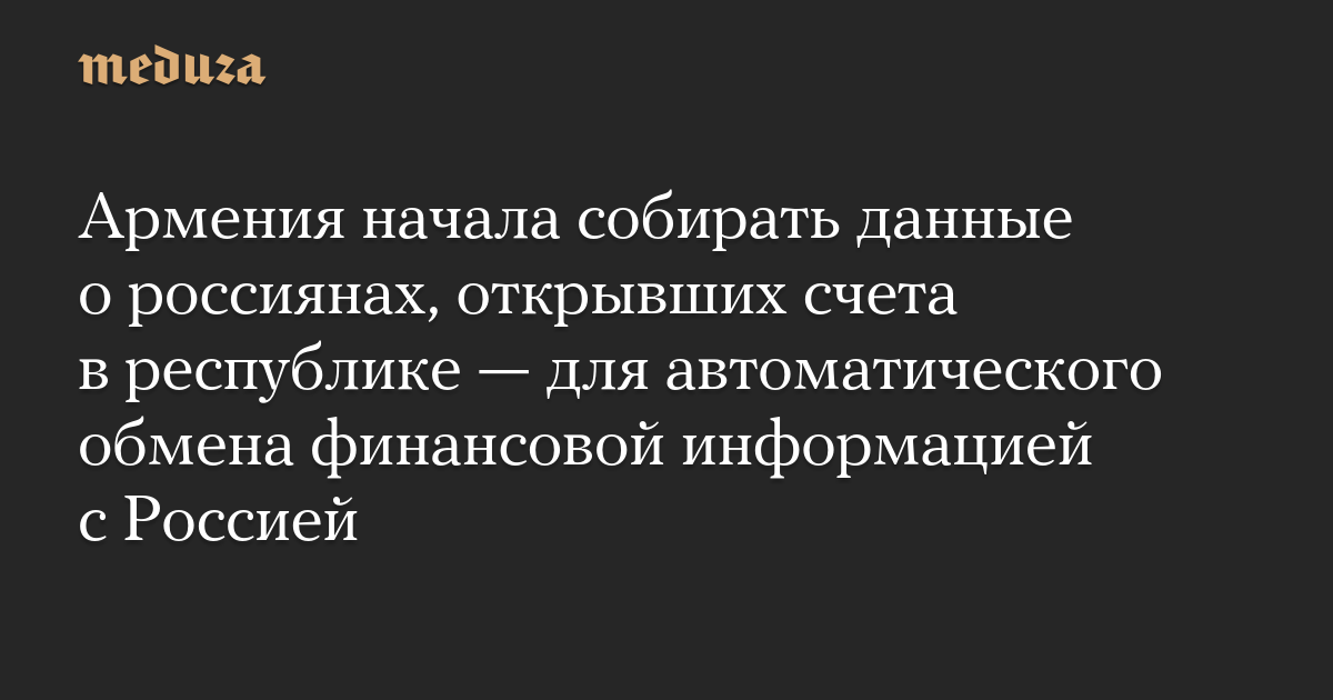 Армения начала собирать данные о россиянах, открывших счета в республике — для автоматического обмена финансовой информацией с Россией