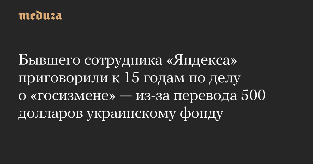 Бывшего сотрудника «Яндекса» приговорили к 15 годам по делу о «госизмене» — из-за перевода 500 долларов украинскому фонду