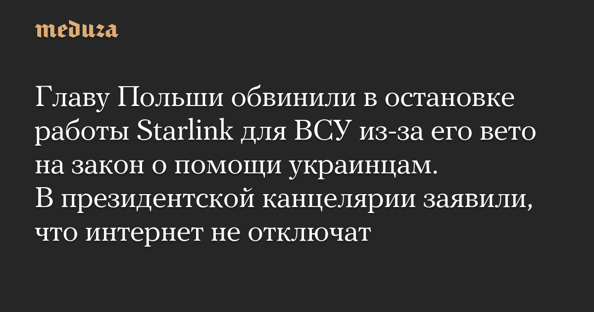 Главу Польши обвинили в остановке работы Starlink для ВСУ из-за его вето на закон о помощи украинцам. В президентской канцелярии заявили, что интернет не отключат