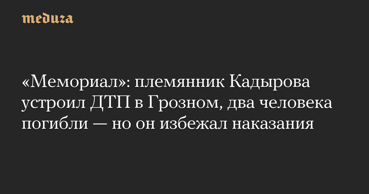 «Мемориал»: племянник Кадырова устроил ДТП в Грозном, два человека погибли — но он избежал наказания