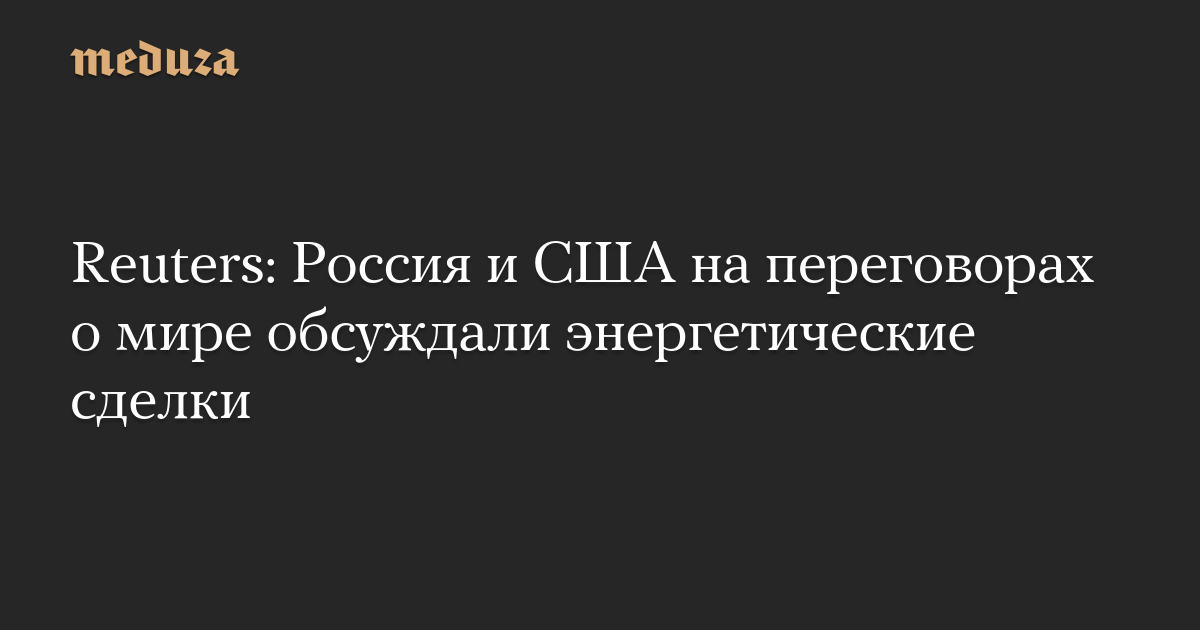 Представители России и США на полях переговоров о мире в Украине обсуждали несколько энергетических сделок, которые должны были побудить Москву согласиться на перемирие, пишет Reuters со ссылкой на пять источников.