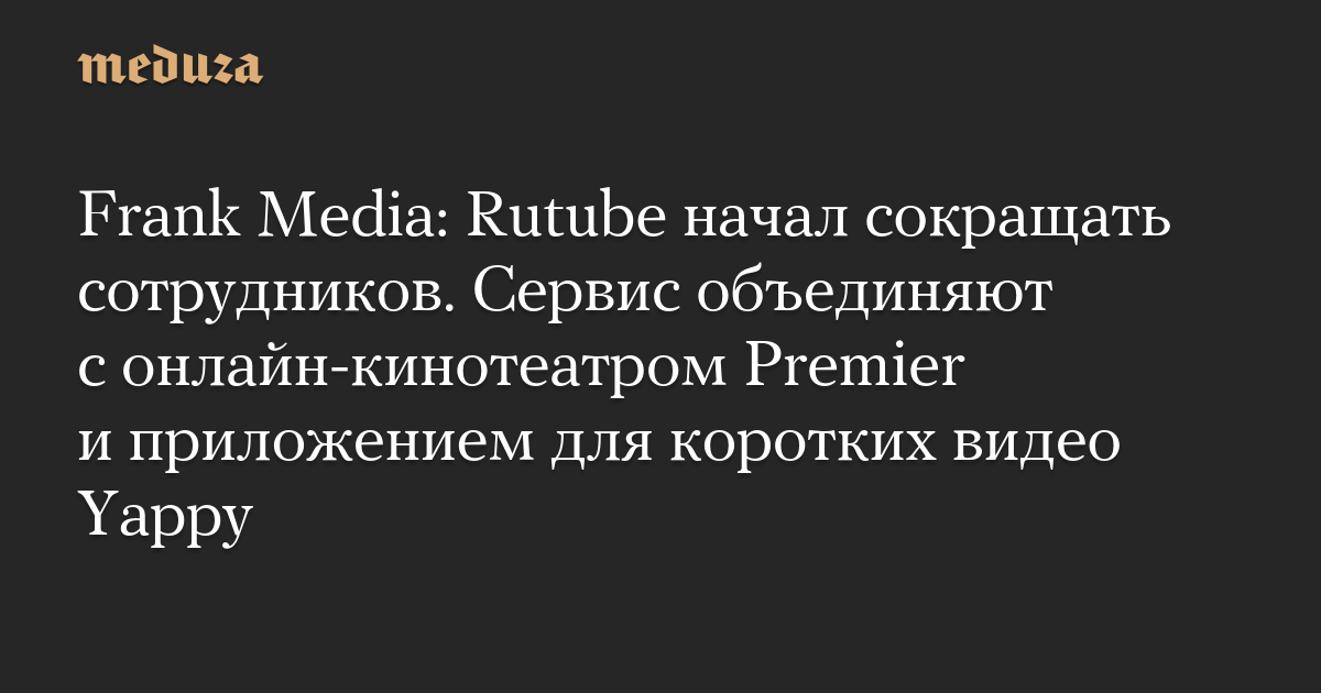 Frank Media: Rutube начал сокращать сотрудников. Сервис объединяют с онлайн-кинотеатром Premier и приложением для коротких видео Yappy