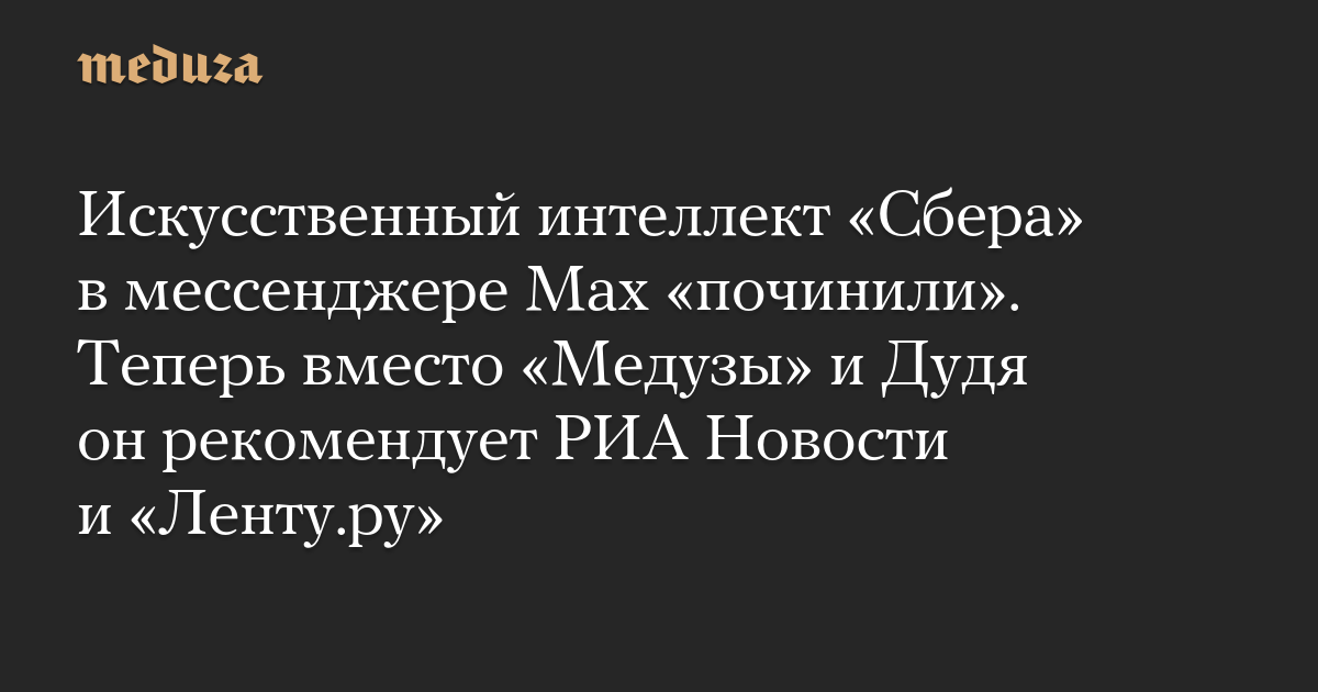 Искусственный интеллект «Сбера» в мессенджере Max «починили». Теперь вместо «Медузы» и Дудя он рекомендует РИА Новости и «Ленту.ру»