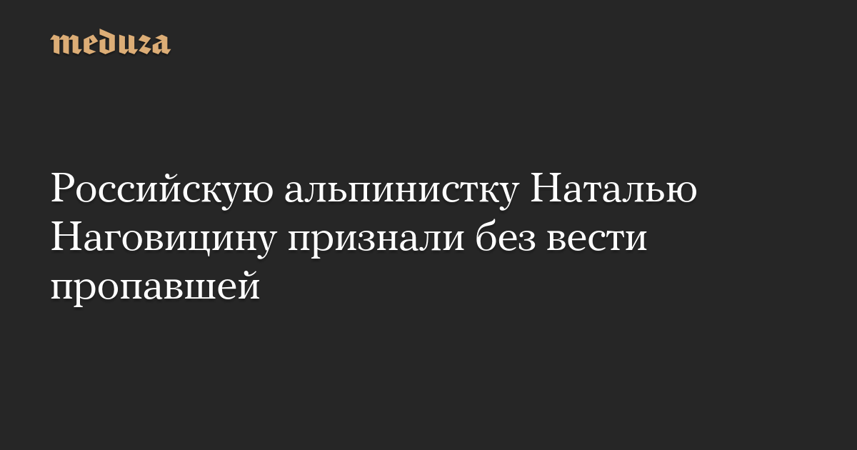 Российская альпинистка Наталья Наговицина официально объявлена пропавшей без вести, сообщили ТАСС в МЧС Кыргызстана.