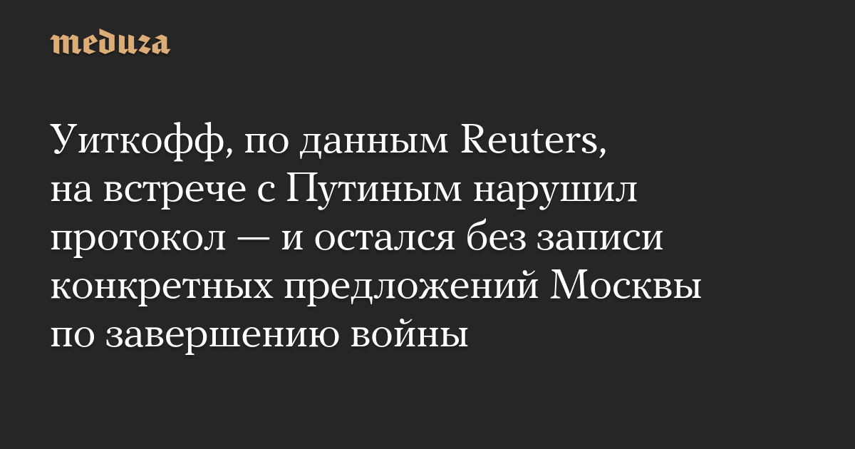 Уиткофф, по данным Reuters, на встрече с Путиным нарушил протокол — и остался без записи конкретных предложений Москвы по завершению войны