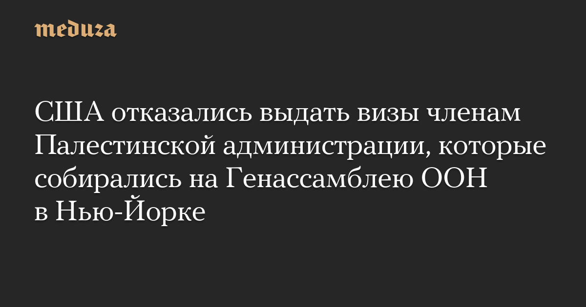 Госдепартамент США отказал в выдаче или аннулировал действующие въездные визы для членов Палестинской национальной администрации и Организации освобождения Палестины, которые намеревались в сентябре принять участие в сессии Генеральной ассамблеи ООН в Нью-Йорке, пишет The Washington Post.