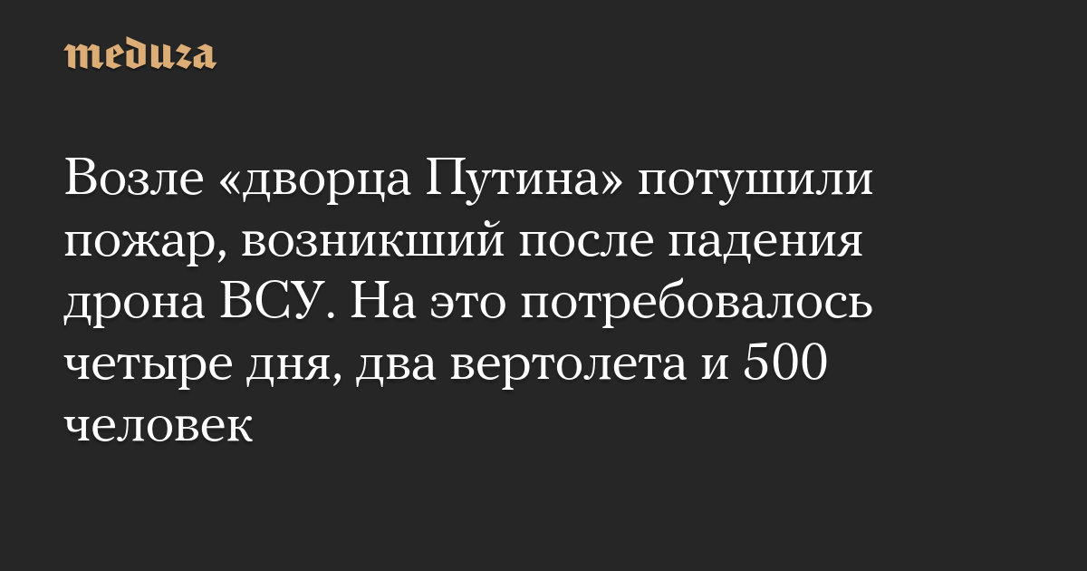 Возле «дворца Путина» потушили пожар, возникший после падения дрона ВСУ. На это потребовалось четыре дня, два вертолета и 500 человек