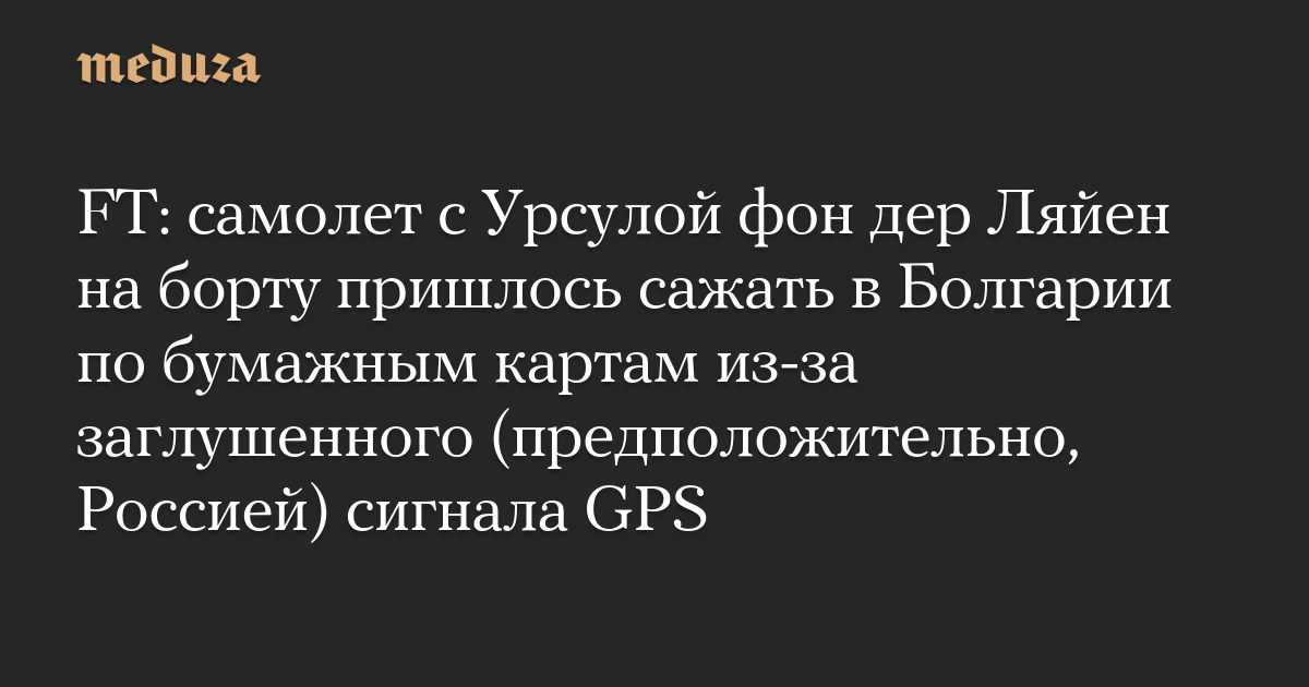 FT: самолет с Урсулой фон дер Ляйен на борту пришлось сажать в Болгарии по бумажным картам из-за заглушенного (предположительно, Россией) сигнала GPS