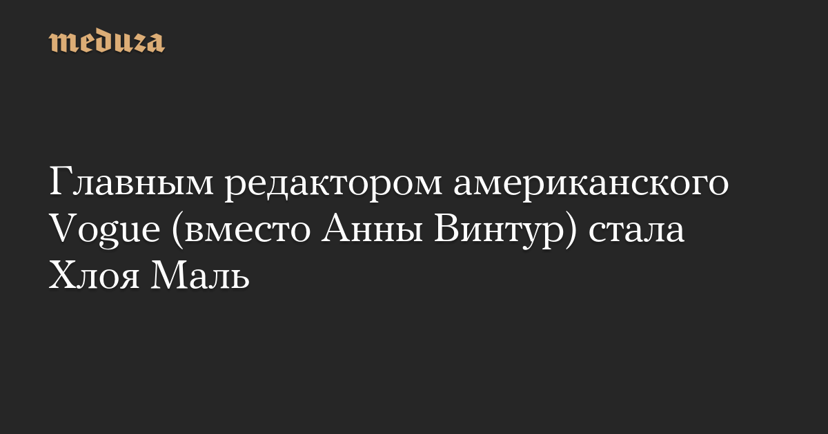 Главным редактором американского Vogue (вместо Анны Винтур) стала Хлоя Маль