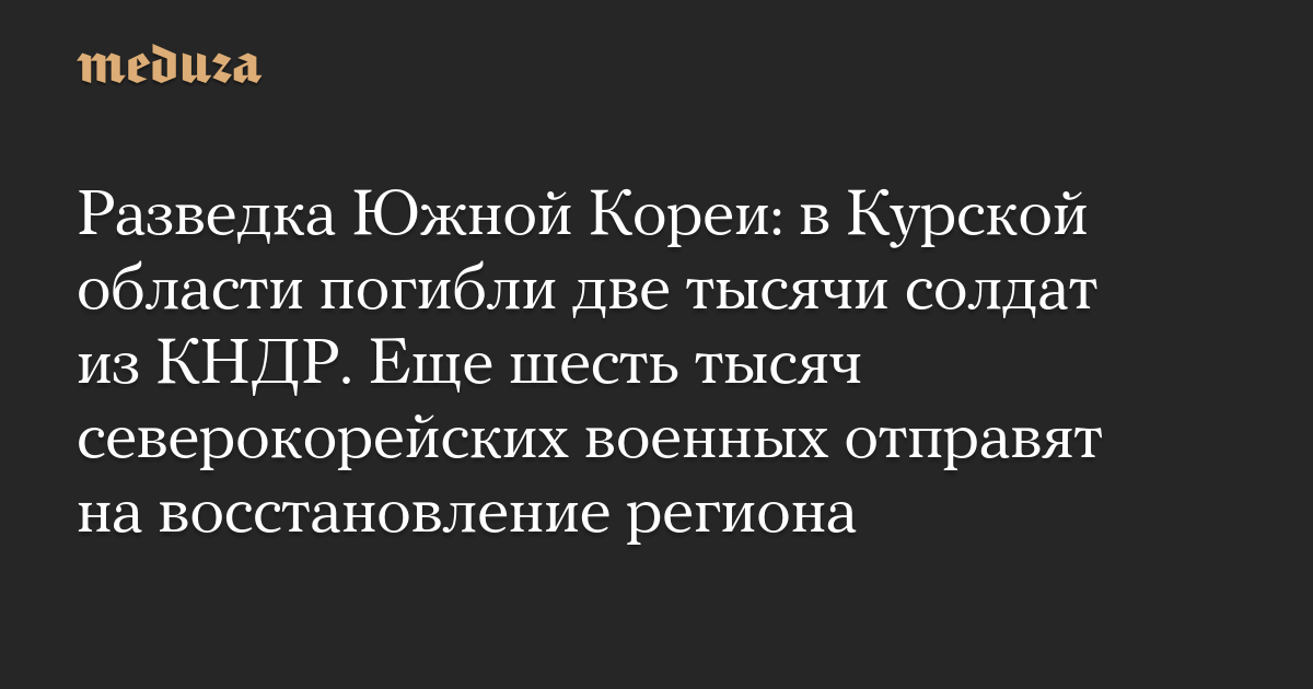 Разведка Южной Кореи: в Курской области погибли две тысячи солдат из КНДР. Еще шесть тысяч северокорейских военных отправят на восстановление региона