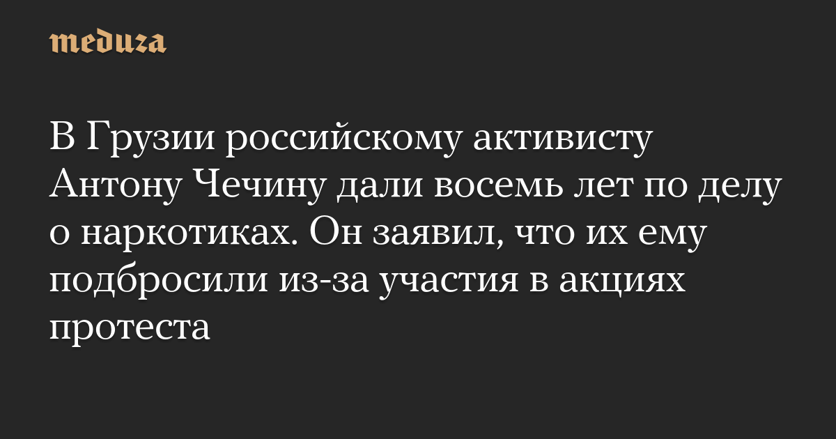 В Грузии российскому активисту Антону Чечину дали восемь лет по делу о наркотиках. Он заявил, что их ему подбросили из-за участия в акциях протеста