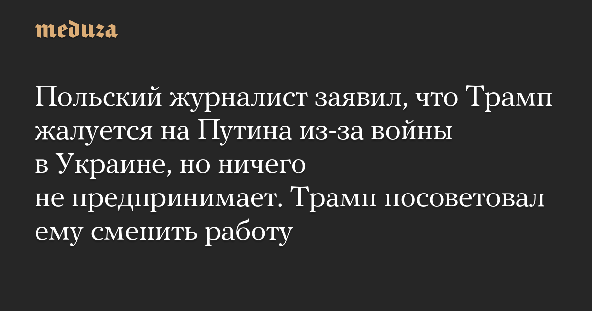 Польский журналист заявил, что Трамп жалуется на Путина из-за войны в Украине, но ничего не предпринимает. Трамп посоветовал ему сменить работу