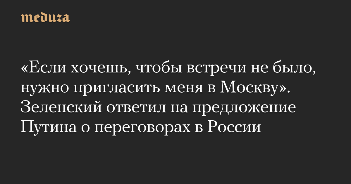 «Если хочешь, чтобы встречи не было, нужно пригласить меня в Москву». Зеленский ответил на предложение Путина о переговорах в России