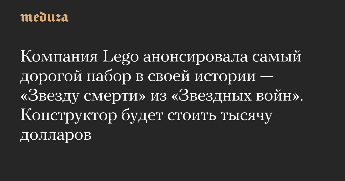 Компания Lego анонсировала самый дорогой набор в своей истории — «Звезду смерти» из «Звездных войн». Конструктор будет стоить тысячу долларов