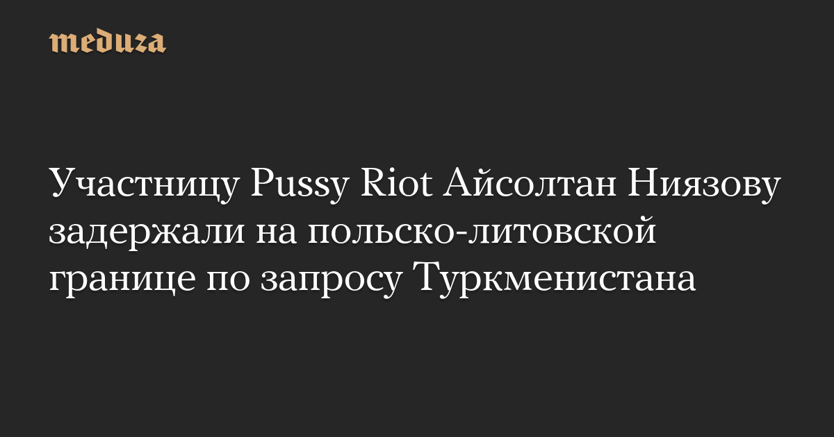 На польско-литовской границе задержали участницу Pussy Riot Айсолтан Ниязову, сообщила «Медиазона» со ссылкой на другую участницу группы Марию Алехину.