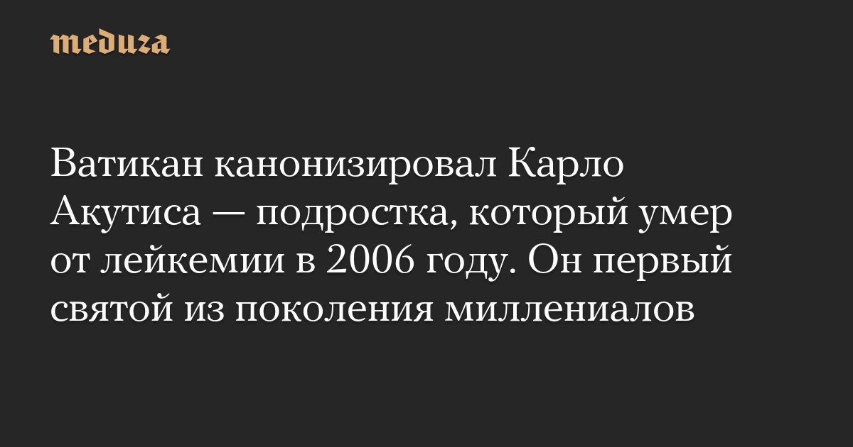 Ватикан канонизировал Карло Акутиса — подростка, который умер от лейкемии в 2006 году. Он первый святой из поколения миллениалов