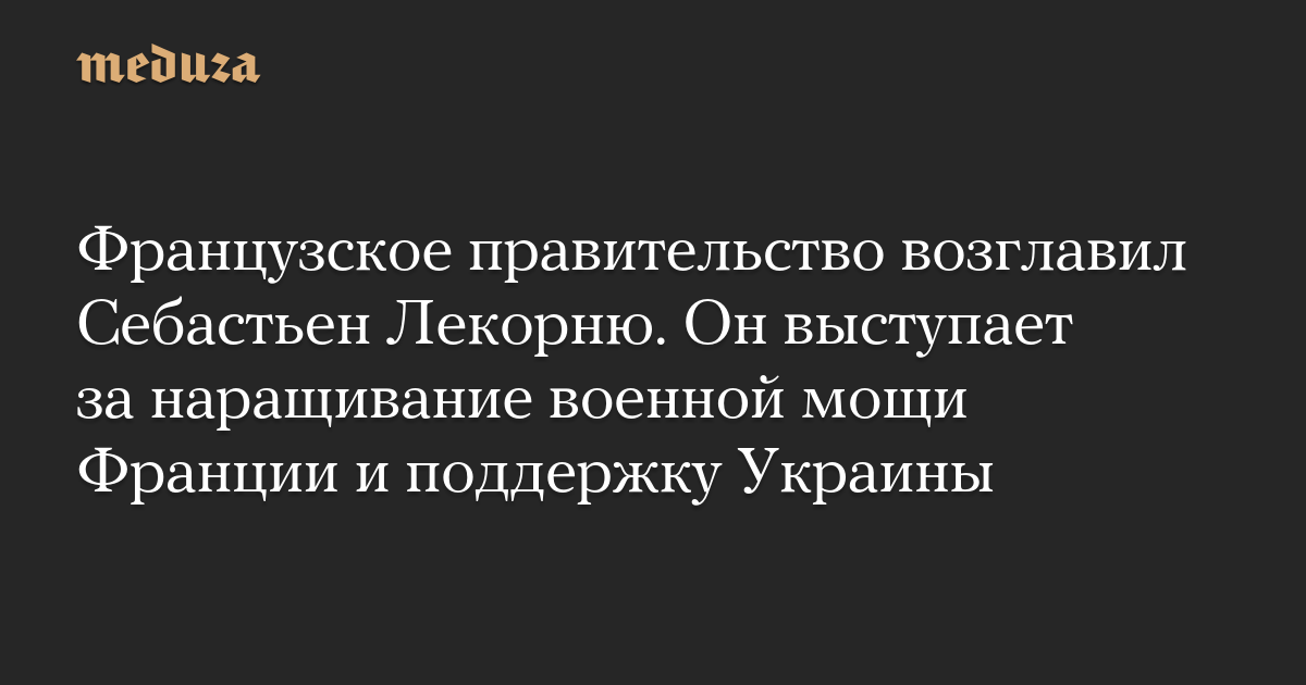 Французское правительство возглавил Себастьен Лекорню. Он выступает за наращивание военной мощи Франции и поддержку Украины