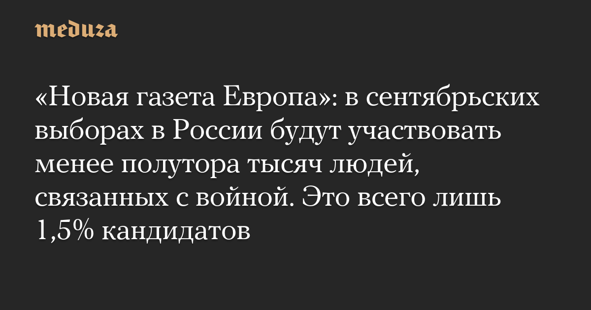 «Новая газета Европа»: в сентябрьских выборах в России будут участвовать менее полутора тысяч людей, связанных с войной. Это всего лишь 1,5% кандидатов