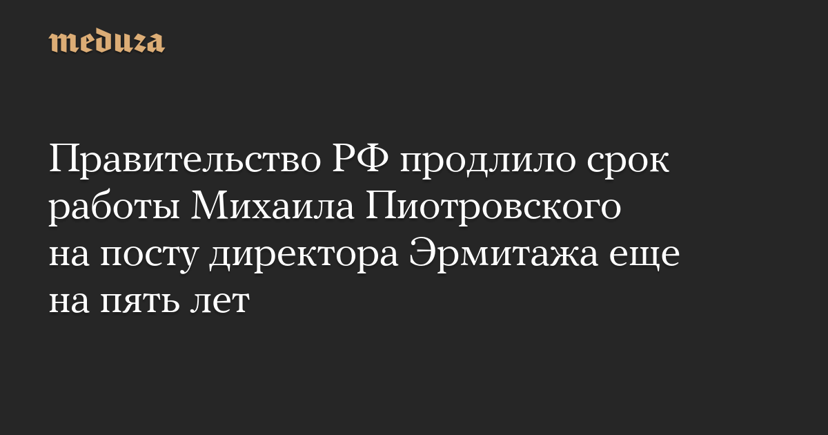 Правительство РФ неоднократно продлевало полномочия Михаила Пиотровского на посту главы Эрмитажа — в предыдущий раз это произошло в сентябре 2022 года.
