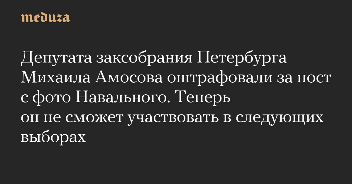 Депутата заксобрания Петербурга Михаила Амосова оштрафовали за пост с фото Навального. Теперь он не сможет участвовать в следующих выборах