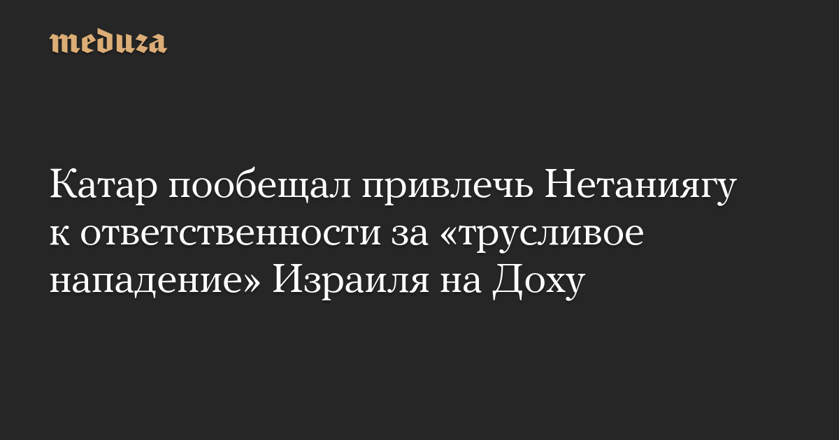 В Катаре назвали заявления Нетаниягу попыткой «оправдать трусливое нападение» Израиля, а также «прямыми угрозами будущего нарушения государственного суверенитета».