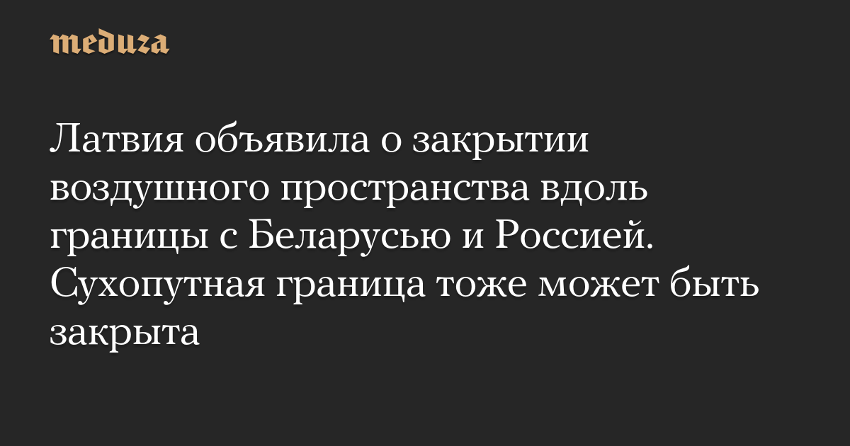 Латвия объявила о закрытии воздушного пространства вдоль границы с Беларусью и Россией. Сухопутная граница тоже может быть закрыта