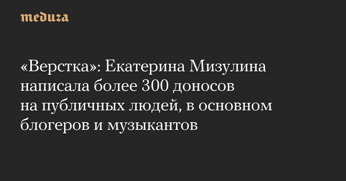 Екатерина Мизулина на посту главы «Лиги безопасного интернета» написала доносы как минимум на 318 публичных людей, четыре музыкальные группы и одну антивоенную организацию, подсчитало издание «Верстка».