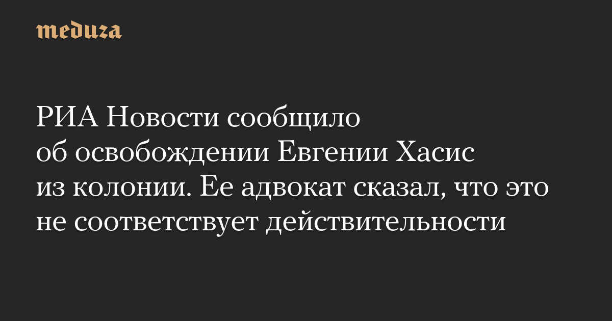 РИА Новости сообщило об освобождении Евгении Хасис из колонии. Ее адвокат сказал, что это не соответствует действительности