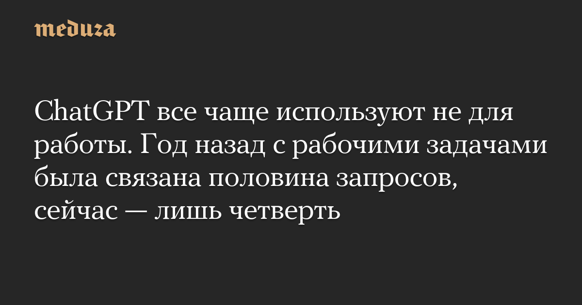 ChatGPT все чаще используют не для работы. Год назад с рабочими задачами была связана половина запросов, сейчас — лишь четверть