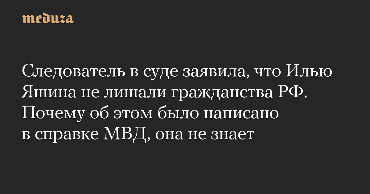 Следователь в суде заявила, что Илью Яшина не лишали гражданства РФ. Почему об этом было написано в справке МВД, она не знает