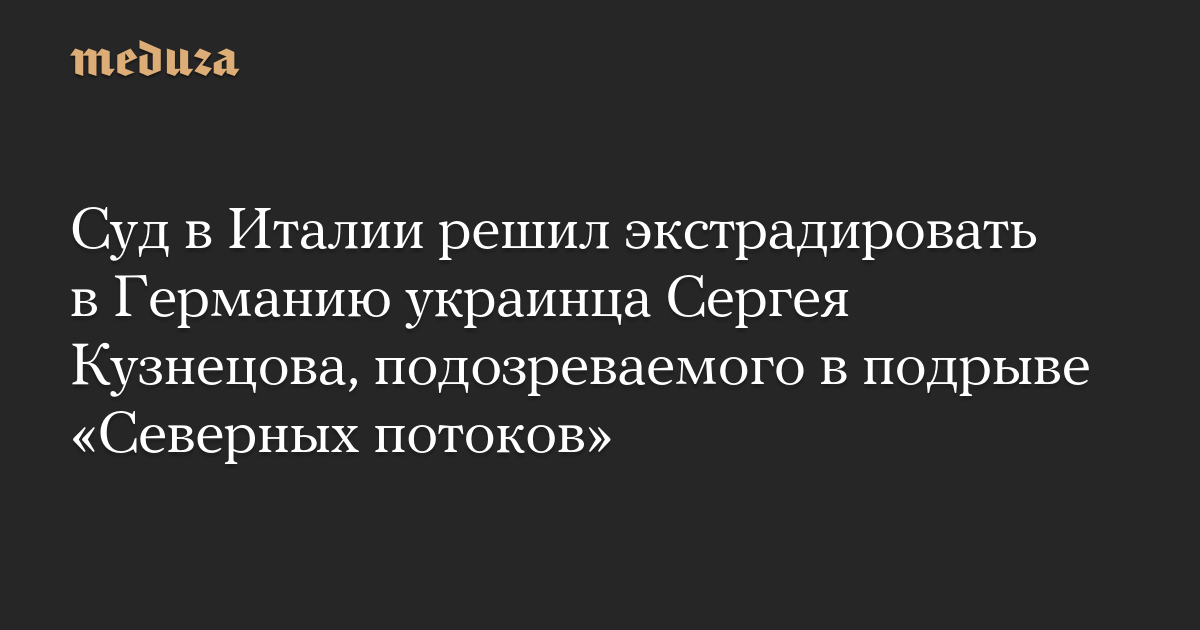 Суд в Италии решил экстрадировать в Германию украинца Сергея Кузнецова, подозреваемого в подрыве «Северных потоков»