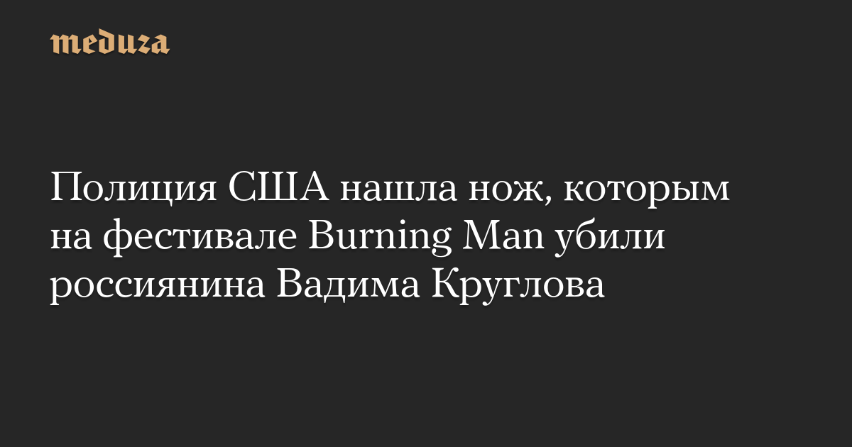 Полиция США обнаружила нож, которым, предположительно, убили 37-летнего россиянина Вадима Круглова на фестивале Burning Man, проходившем в пустыне Блэк-Рок в американском штате Невада.