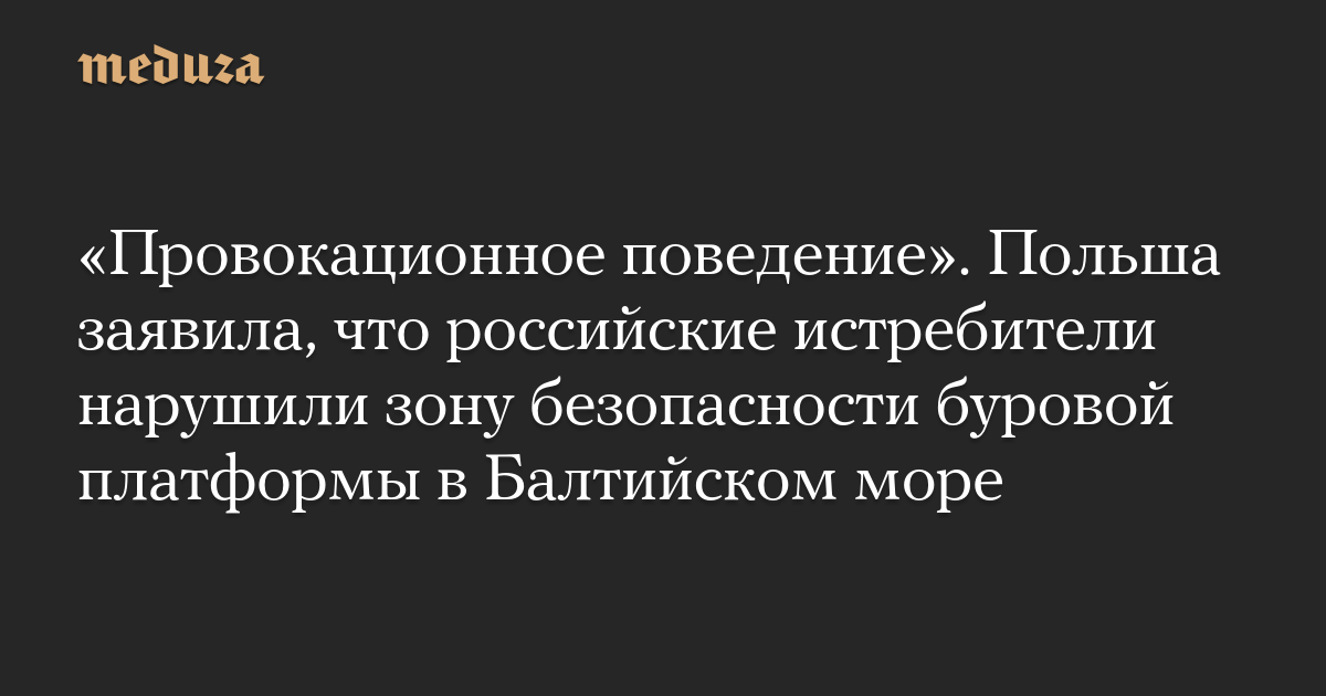 «Провокационное поведение». Польша заявила, что российские истребители нарушили зону безопасности буровой платформы в Балтийском море