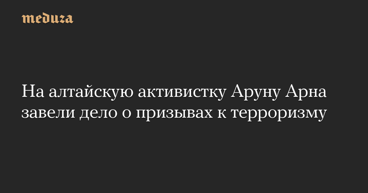 В отношении алтайской активистки Аруны Арна — одной из лидеров протестных акций в республике — возбуждено дело о публичных призывах к террористической деятельности (часть 2 статьи 205.2 УК), пишет «Медиазона».