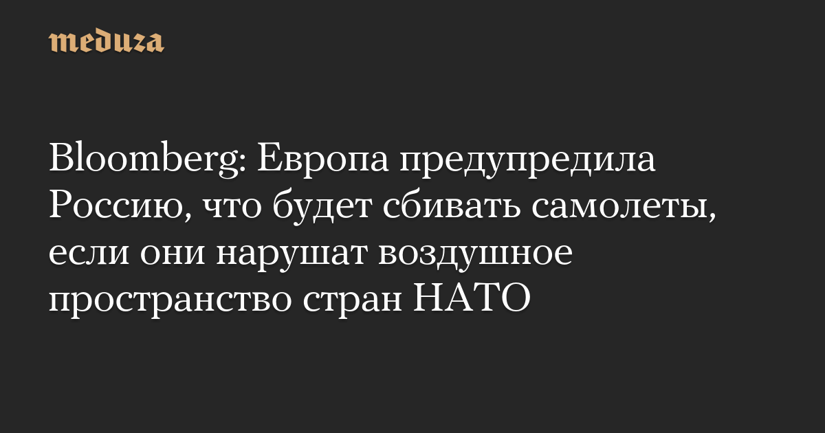 Дипломаты из Великобритании, Германии и Франции в ходе переговоров в Москве предупредили власти РФ, что НАТО готовы применить силу в ответ на нарушение воздушного пространства стран альянса, в том числе сбивать российские самолеты, сообщило 25 сентября агентство Bloomberg, ссылаясь на источники.