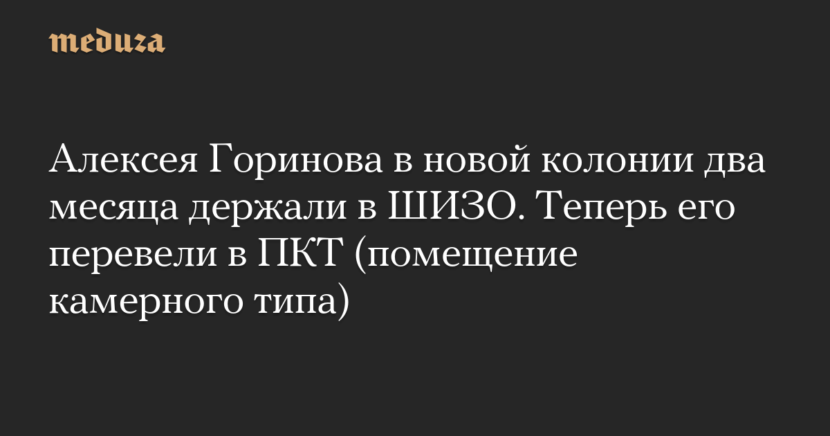 Алексея Горинова в новой колонии два месяца держали в ШИЗО. Теперь его перевели в ПКТ (помещение камерного типа)