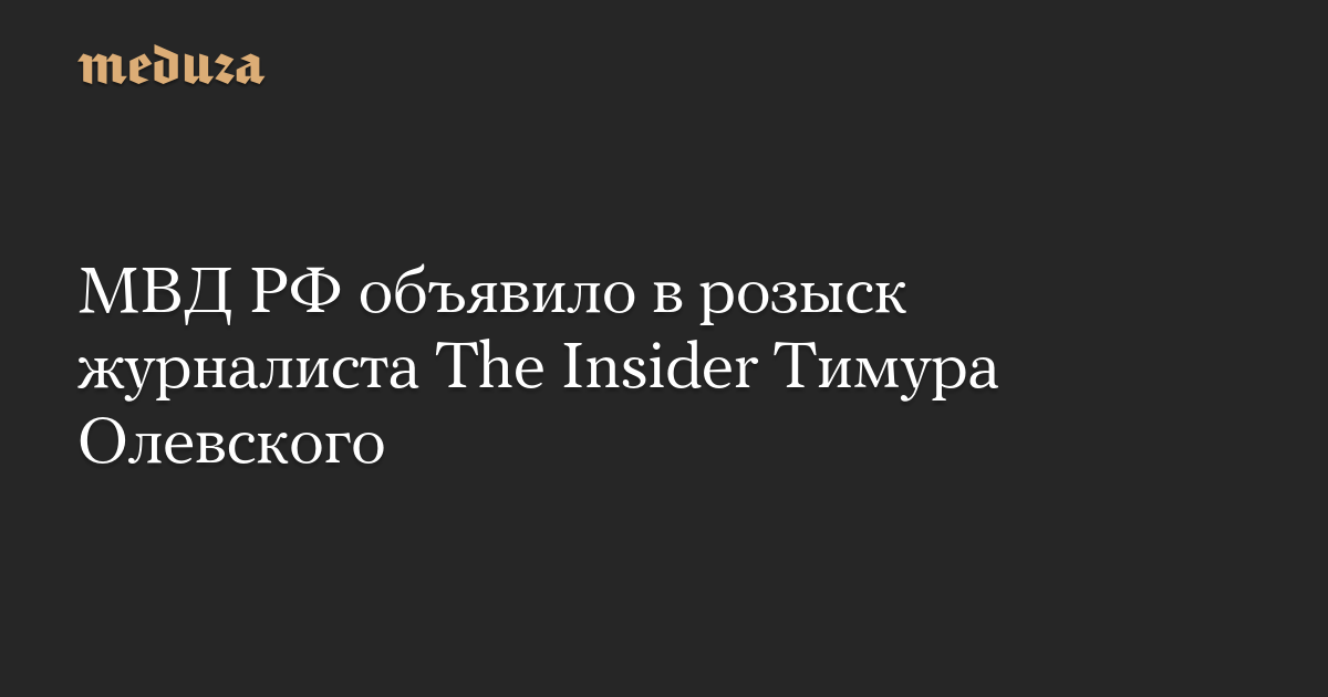 Шеф-редактор отдела новостей The Insider Тимур Олевский объявлен в федеральный розыск. Информация об этом появилась в базе данных МВД РФ. В карточке говорится, что Олевский «разыскивается по статье УК».