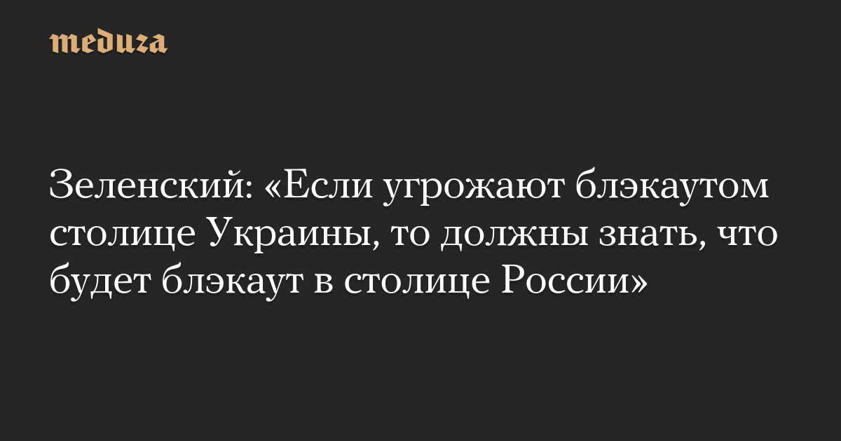 «Если угрожают блэкаутом, например, столице Украины, то должны знать в Кремле, что будет блэкаут в столице России», — заявил Зеленский на брифинге (цитата по «Украинской правде»).