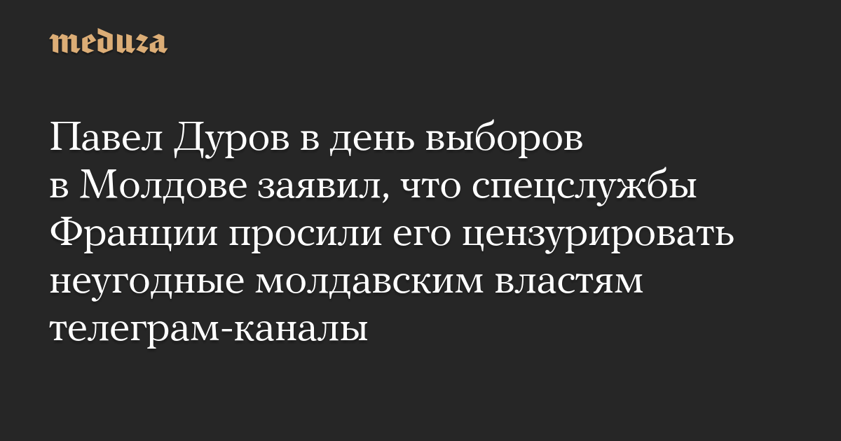 Павел Дуров в день выборов в Молдове заявил, что спецслужбы Франции просили его цензурировать неугодные молдавским властям телеграм-каналы