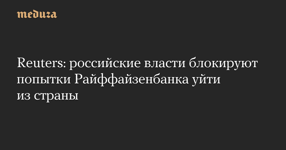 Reuters: российские власти блокируют попытки Райффайзенбанка уйти из страны