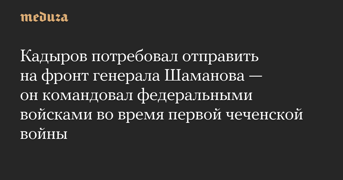Кадыров потребовал отправить на фронт генерала Шаманова — он командовал федеральными войсками во время первой чеченской войны