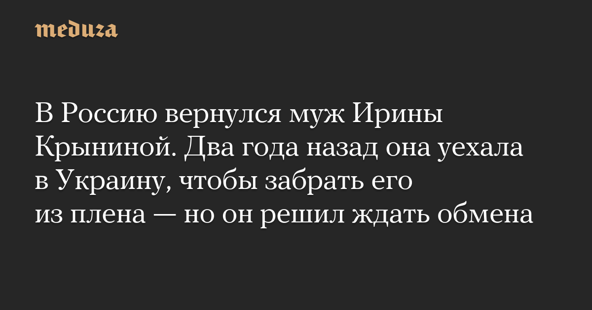 В Россию вернулся муж Ирины Крыниной. Два года назад она уехала в Украину, чтобы забрать его из плена — но он решил ждать обмена