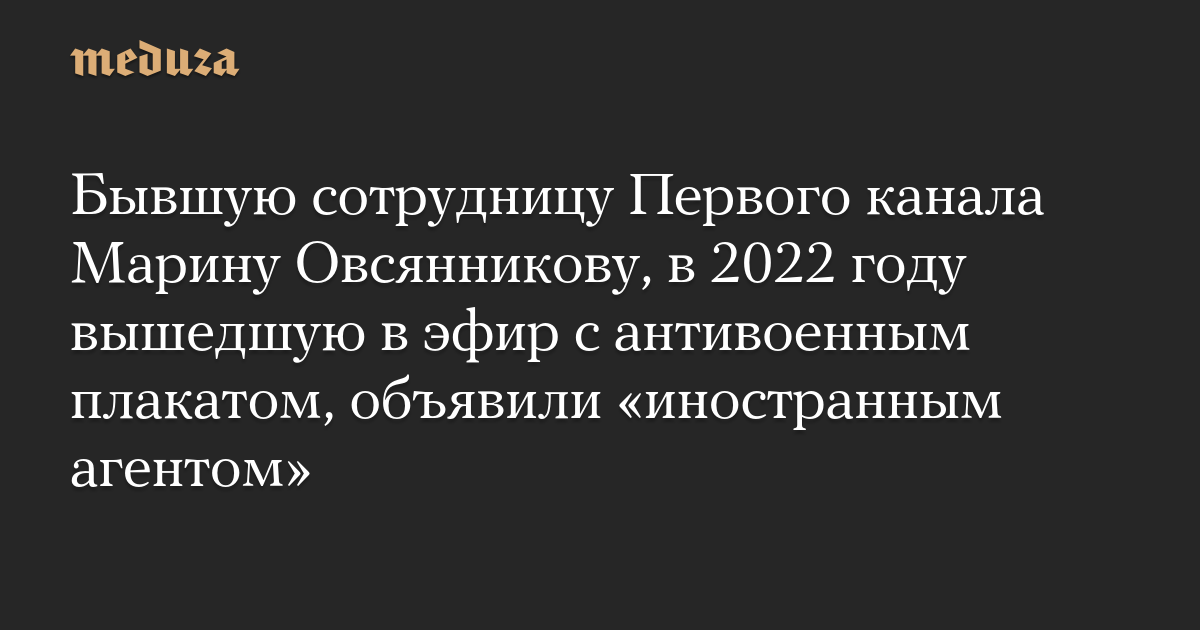 Бывшую сотрудницу Первого канала Марину Овсянникову, в 2022 году вышедшую в эфир с антивоенным плакатом, объявили «иностранным агентом»