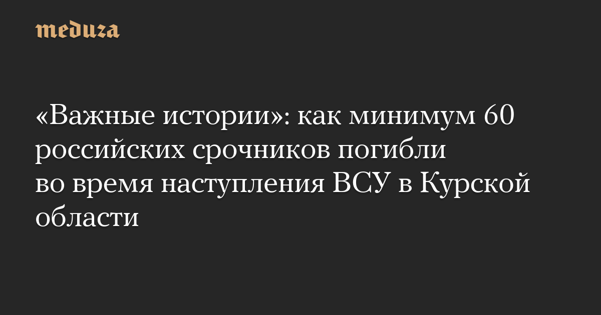 Летом и осенью 2024 погибли как минимум 60 российских срочников во время наступления ВСУ в Курской области, пишут «Важные истории» со ссылкой на сообщения СМИ, публикации родственников соцсетях и реестр наследственных дел.