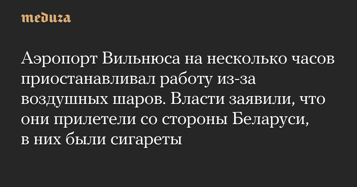 Аэропорт Вильнюса на несколько часов приостанавливал работу из-за воздушных шаров. Власти заявили, что они прилетели со стороны Беларуси, в них были сигареты