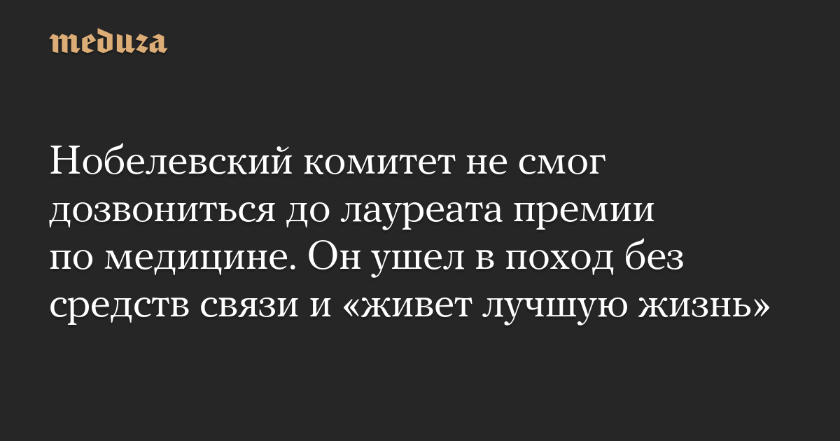 Нобелевский комитет не смог дозвониться до лауреата премии по медицине. Он ушел в поход без средств связи и «живет лучшую жизнь»