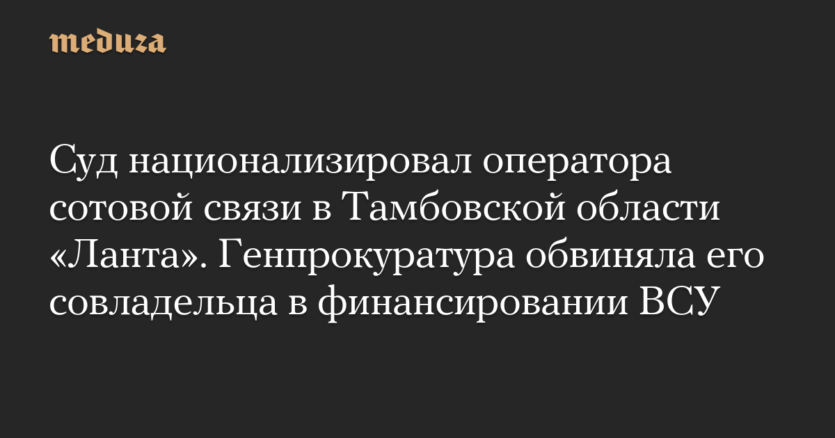 Суд национализировал оператора сотовой связи в Тамбовской области «Ланта». Генпрокуратура обвиняла его совладельца в финансировании ВСУ